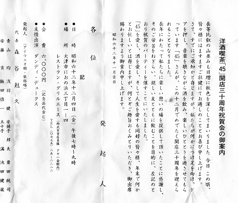 開店30周年祝賀会(1987/12) |