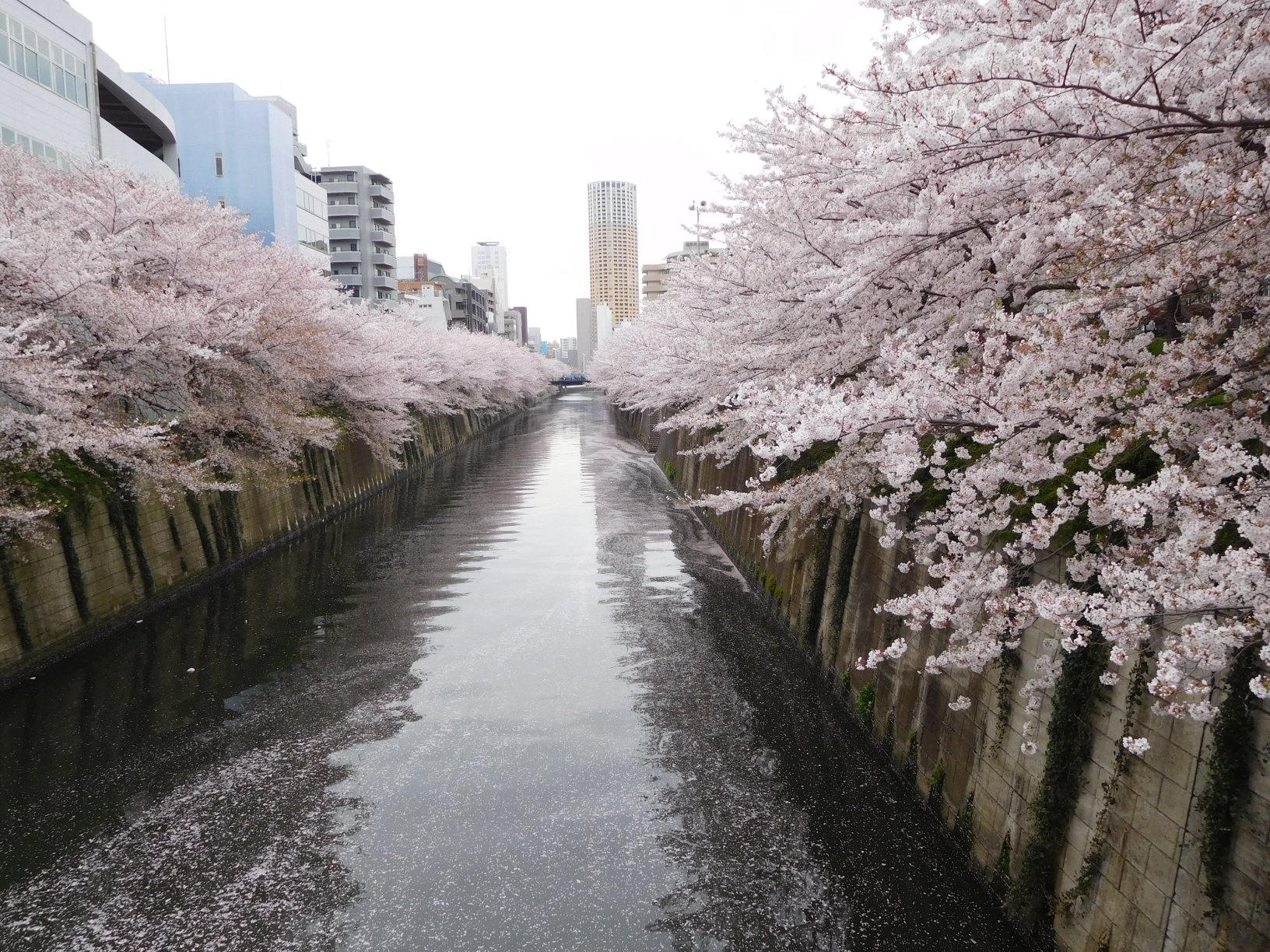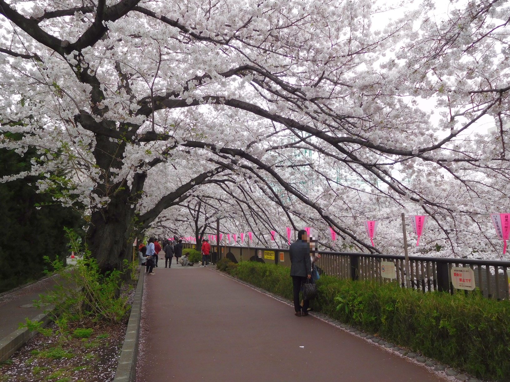 | 上京の機会に、目黒川の桜を初めて訪ねました。JR目黒駅から行人坂を下ると、雅叙園。ここから、川に沿って、中目黒駅まで歩きました。両岸が静かな散策歩道になっていて、桜の木も大木が多く、良く保存されたものと感心しました。