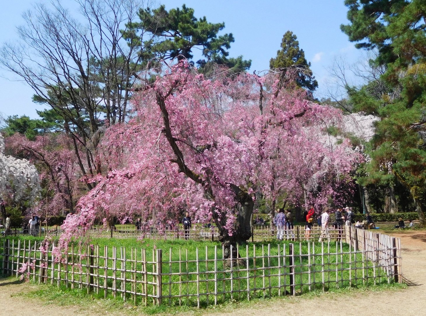| 昨年と同日の4月5日、京都御苑を訪問。今年は開花が遅れたため、枝垂れ桜が満開。地下鉄今出川駅下車、乾御門から入り、時計回りに一周。軽食込み、約2時間で、いろいろな種類の桜を楽しみました。