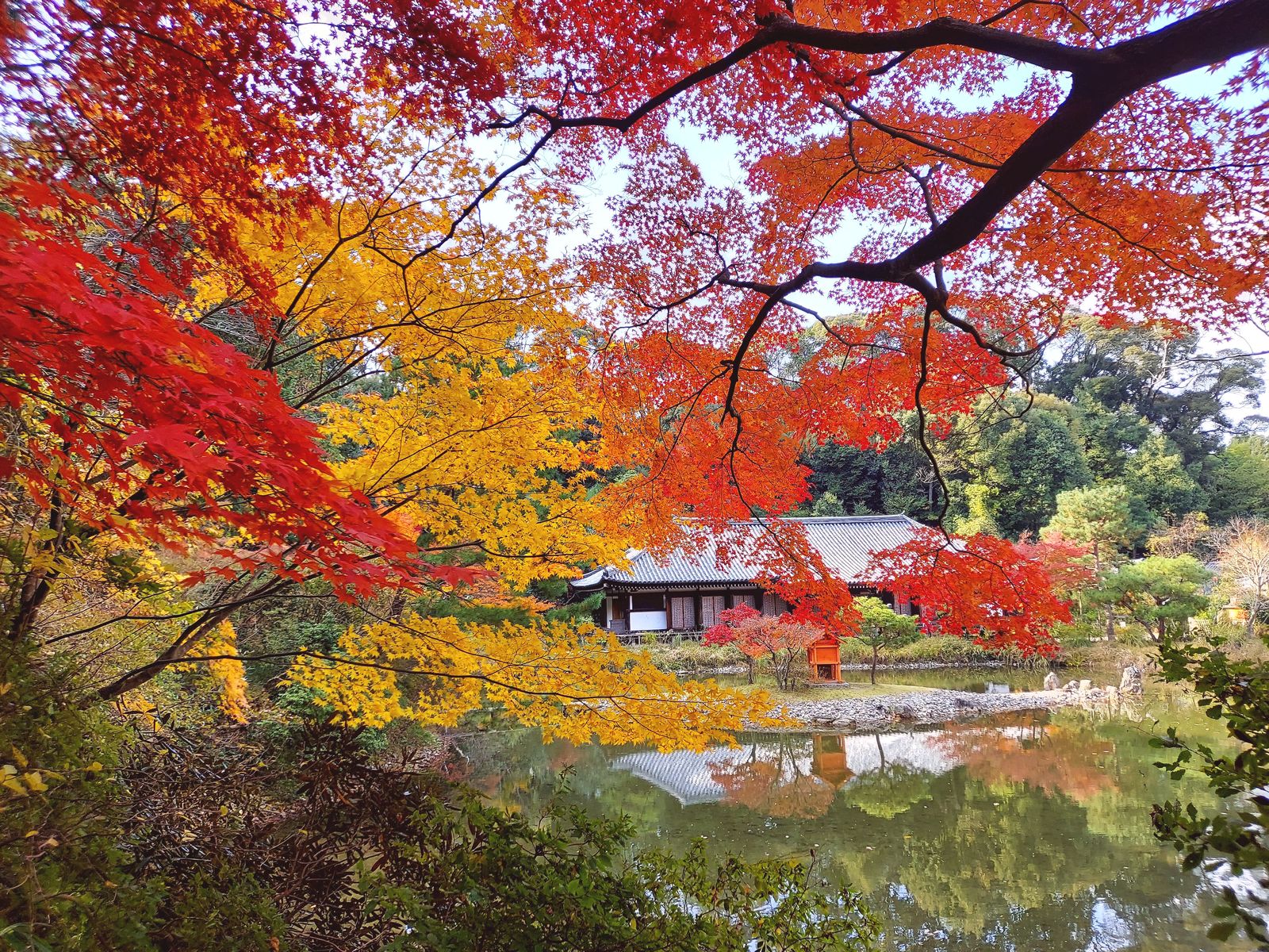| 秋晴れの朝、思い立って、数十年振りに湖東三山を巡りました。紅葉が例年より約5日早いとのことで、ちょうど見頃でした。