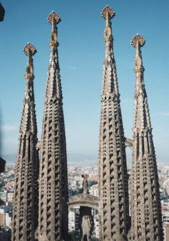 ☆サグラダ・ファミリア(聖家族)教会: 100年以上経っても建築中で、これから更に100年くらいかかるというスケールの大きさに圧倒される。内部は実際に工事中。エレベータと階段で上に登る。細い垂直の塔の上で、目が回りそう。 |