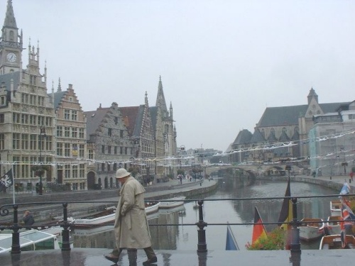 徒歩で美術館へ。 ■ベルギー王立美術館:両方でE7。とにかく、広い。→ 美術館書庫(オランダ・ベルギー・パリ美術紀行) 帰途、オーディオ店で、盗まれたACアダプタ(USA規格と表示)購入。 夕食は、再度、ホテル地下のレストランへ。ワイン、ムール貝mussels(白ワイン蒸し)約E18、うまい! 足が痛む。 第6日(土) ゲント&ブリュージュ 初めての曇り、肌寒い(最高12度くらい)。午後から小雨。 9:30に駅に着いたが、10:04発、オステンド行き。ゲント、ブルージュ往復、E13(週末割引)。電車内の新聞はドイツ語(アーヘン地方紙)。 車窓風景、草原、低い丘、赤い屋根、白樺林、ポプラ(?)並木。